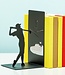 De golfer heeft net z'n bal weggeslagen. Enkelvoudige boekensteun voor de golfliefhebber.