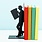 Leuke enkelvoudige boekensteun met een mysterieuze man die leunend tegen de boeken een krant lijkt te lezen.
