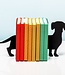 Deze boekensteun uit twee delen, de voorkant en de achterkant van de teckel.
