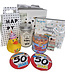 Cadeaupakket met leuke Happy Birthday artikelen om de jarige 50-er mee te verrassen.