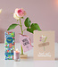 Iemand beterschap wensen bij ziekte of een voorspoedig herstel wensen na een operatie? Bezorg Veel Liefs Beterschap door de brievenbus. Dit originele beterschap cadeau bestaat uit een Roos in een vaasje, Fairtrade chocoreep en een mini kaars. Een mooie verrassing om iemand beterschap te wensen, geleverd in een stijlvolle cadeauverpakking.