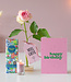 Dit originele verjaardagscadeau bestaat uit een Roos in een vaasje, een Fairtrade Chocoreep en een Mini kaars, geleverd in een feestelijke cadeauverpakking!